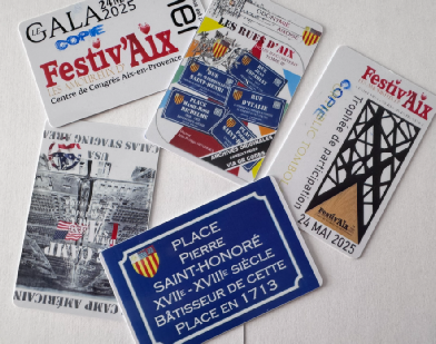 300 mini-plaques collector Festiv’Aix dissimulées dans des enveloppes seront mis en vente (10€) dans le hall de Festiv’Aix 2025. Le tirage aura lieu dans l’amphithèâtre après la remise des prix aux lauréats. Nombreux lots dont de véritables plaques de rue aux noms évocateurs d’Aix « Richelme, Espariat, Saint-Honoré, Italie, etc… » ( valeur 150€) en métal émaillé 45x25 de 1k5, ainsi que des livres ‘’ Les rues d’Aix nous racontent et le Camp américain’’et des trophées festiv’Aix2025.