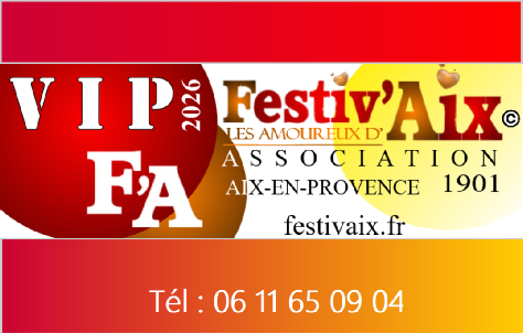 FESTIV'AIX :   Evénement qui célèbre l'âme créative et entrepreneuriale d'Aix. Mettre en lumière de jeunes artistes et associations, qu'ils soient auteurs-compositeurs, interprètes, peintres, musiciens, commerçants, artisans ou entrepreneurs. qui contribuent à façonner l'identité dynamique de la ville d'Aix-en-Provence.