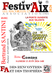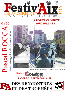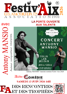 FESTIV'AIX : Evénement qui célèbre l'âme créative et entrepreneuriale d'Aix. Mettre en lumière de jeunes artistes et associations, qu'ils soient auteurs-compositeurs, interprètes, peintres, musiciens, commerçants, artisans ou entrepreneurs. qui contribuent à façonner l'identité dynamique de la ville d'Aix-en-Provence.