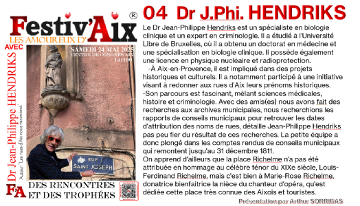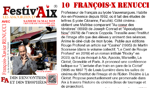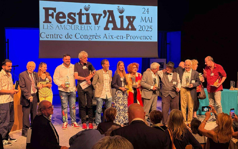 Ils étaient tous là, Patricia Pélissié, Mylène Margail, Andréa Férreol, Laure Willem, Sara Lehberger, Jacky Chabert, Jacques Maleyran, Pierre Dussol, Paul-André Guillaume, Jean-Philippe Hendriks, Frédéric Paul, François-Xavier Renucci, Bernard Beka, Arthur Sorribas pour accueillir les invités et offrir la rose de la fête des mères. C’est devant un beau parterre d'invités que les lauréats ont parlé de leur projet. Une pensée pour notre Coco absent pour raisons de santé, un bon rétablissement à mon coéquipier de la première heure. Puis c’était l'heure de remise des trophées pour saluer et récompenser leur oeuvre et travail pour mettre Aix en valeur. Quatre heures en compagnie de mon maître de cérémonie Frédéric Paul. Merci à la présence d’élus, Merci à Arthur Sorribas et Bernard Beka pour la présentation des lauréats. Merci à Norbert et son équipe de technicien à la régie. Merci à Tonic Music pour l'interpretation au saxo des airs du sud, merci à Anne-Sophie et Adrien pour ce cocktail hors du commun. Merci à la librairie le Blason et à l’association l’Enfant Bleu pour leur prestation. Merci aux journalistes de la presse écrite et des médias qui ont relayé l’événement. Merci à vous tous pour votre participation, ce succès et le votre, rendez vous à l'année prochaine. Christian.